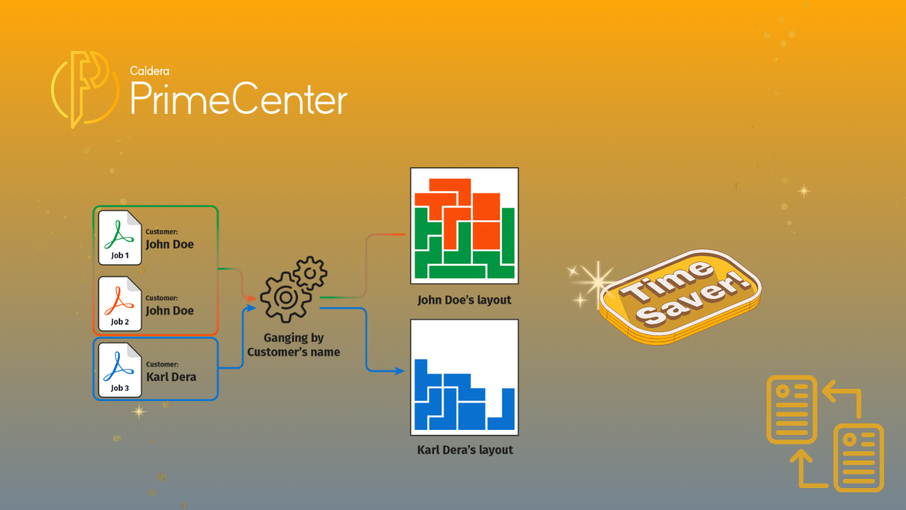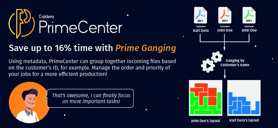 That’s why ganging files became more than a trick to manage files. It now plays an enormous part in having an efficient and scalable print workflow. Using PrimeCenter, you will experience another kind of ganging that will organize your production in the best way possible.